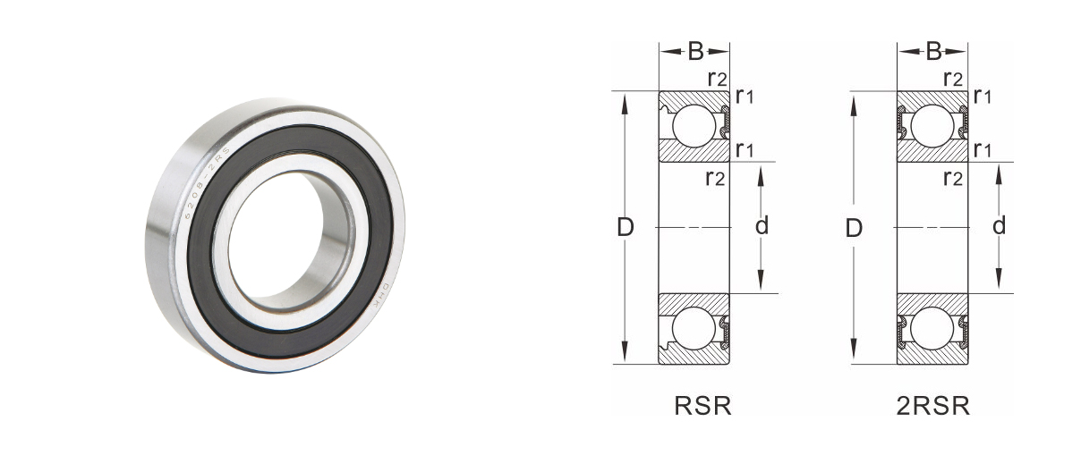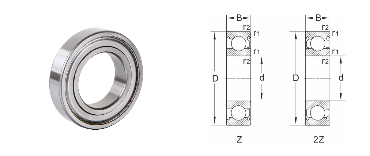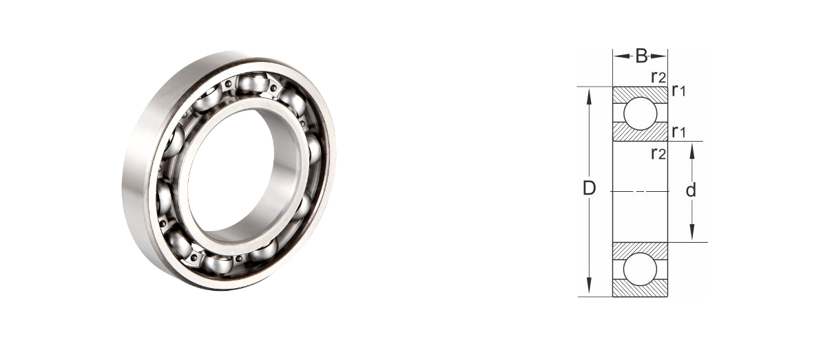 d | D | B | r1,r2 Min | Dinamik yük Cr | Statik yük Cor | Gres yağlama | Yağlama | ||
